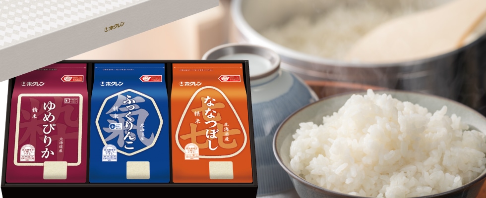 北海道米のなかでも、いま、最も多くつくられている品種です。粘りある「国宝ローズ」を交配させたお米で、つや、粘り、甘みのバランスが抜群です。冷めてもおいしさが長持ちし、お弁当、お寿司などに人気があり、無洗米としての適性にも優れています。