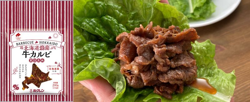 はちみつ入りまろやか甘口たれ仕込み 北海道産牛バラ肉を使用。はちみつ入りのまろやかタレで、幅広い世代に親しまれます。 1袋2人前の味付き焼肉「北海道焼肉」シリーズ 北海道産牛肉に合うタレを厳選して味付けしました。1袋約2人前なので、野菜と炒めておかずのプラス一品や、お酒の肴、お弁当など、幅広くお使いいただけます。フライパンやバーベキューコンロで加熱するだけで食べられるので、普段の食事やアウトドアなど、色々なシーンで活躍する「北海道焼肉」シリーズを、ご家庭の常備品としてぜひご利用ください。