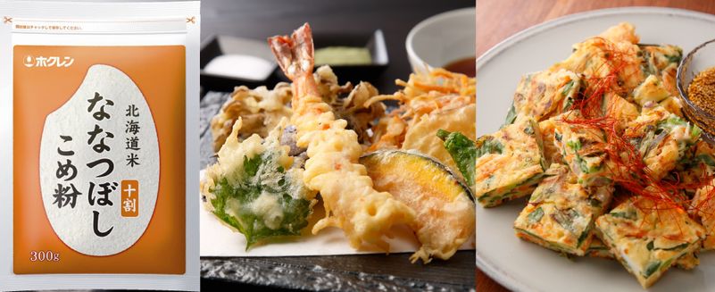 北海道米ななつぼし こめ粉を使ったレシピをご紹介! パッケージの二次元コードから、揚げ物やお菓子など、おいしい米粉レシピをご覧いただけます。下の画像からもアクセスできますので、ぜひご覧ください!