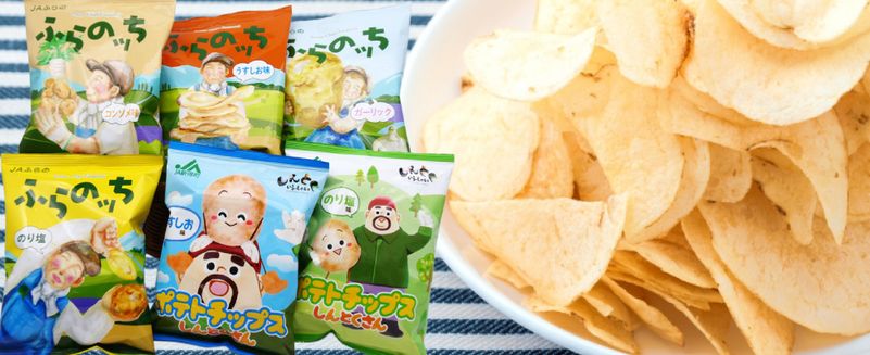 商品紹介「ホクレン くるるの杜 農畜産物直売所」から、北海道産じゃがいもを使用したポテトチップスセットをお届けいたします。ふらのッち(JAふらの)4種、ポテトチップスしんとくさん(JA新得町)2種に、シークレットアイテム2種を詰合せた計8袋のお楽しみセットです!ぜひご利用ください。 セット商品内容