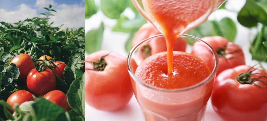 旬に搾った完熟トマト果汁100%使用 北海道の契約生産者が露地栽培した加工用トマトなつのしゅんを使用しています。支柱も立てず、大地にころころ転がりながらたっぷりと太陽を浴びて赤くなった完熟トマトを厳選しています。8月〜9月にフレッシュパックしたジュースで、甘くて果肉感のある濃厚な味わいです。料理の材料やお酒の割り材としてもおすすめです。